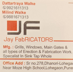 Jay Fabricators is averified professional service provider on DemandToKaro. Specializing in Fabricator, Jay Fabricators is ready to provide exceptional service and build a strong reputation on our platform.